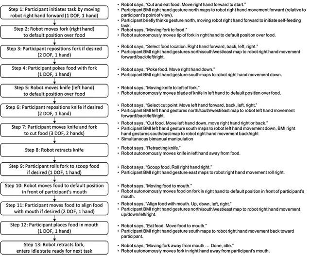 使用刀叉对普通人来说并不难,但对于脑机接口系统来说,两个机械臂共有34个自由度需要操控。